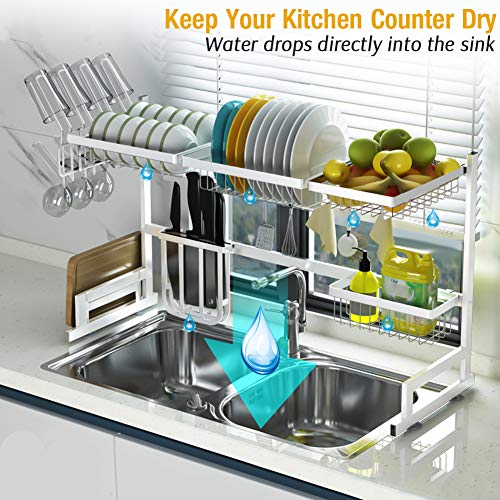 Karmas product over sink dish drying rack stainless steel kitchen supplies storage shelf multifunctional tableware drainer organizer with utensils holder (33.4x12.5x20.4in) average rating: